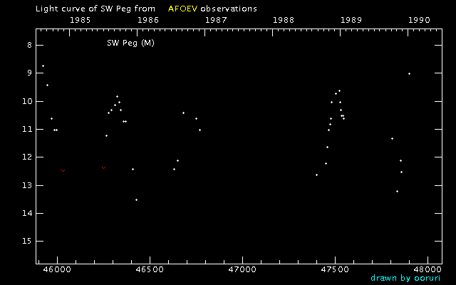 Light Curve of SW Peg (SW Pegasi) from the AFOEV database (1985-1989)