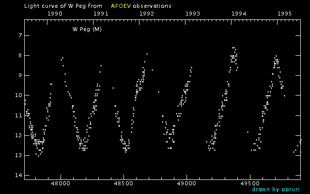 Light Curve of W Peg (W Pegasi) from the AFOEV database (1990-1995)