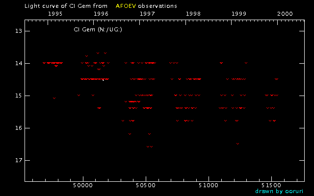 Light Curve of CI Gem (CI Geminorum) from the AFOEV database (1995-1999)