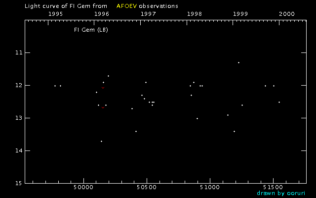 Light Curve of FI Gem (FI Geminorum) from the AFOEV database (1995-1999)