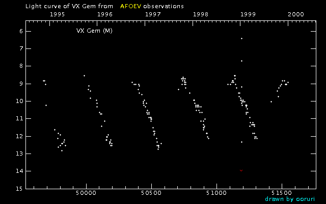 Light Curve of VX Gem (VX Geminorum) from the AFOEV database (1995-1999)