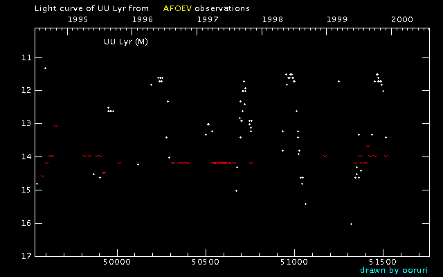 Light Curve of UU Lyr (UU Lyrae) from the AFOEV database (1995-1999)