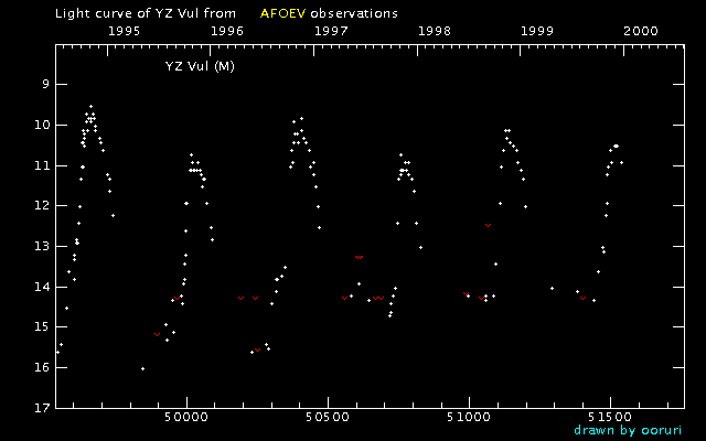 AFOEV curve (1990-1995) : YZ Vul (VULYZ)
