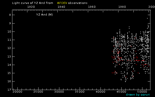 Light Curve of YZ And (YZ Andromedae) from the AFOEV database (1900-1999)