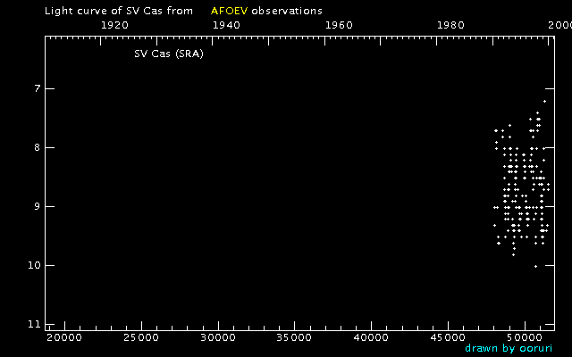 Light Curve of SV Cas (SV Cassiopeiae) from the AFOEV database (1900-1999)