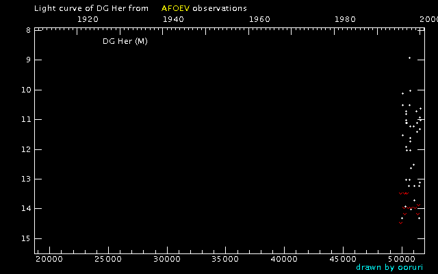 Light Curve of DG Her (DG Herculis) from the AFOEV database (1900-1999)