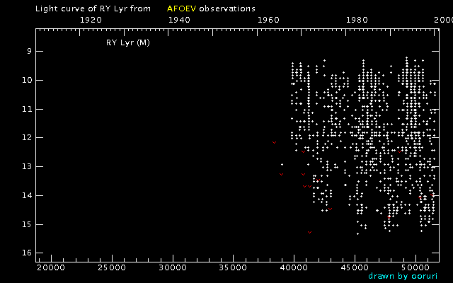 Light Curve of RY Lyr (RY Lyrae) from the AFOEV database (1900-1999)