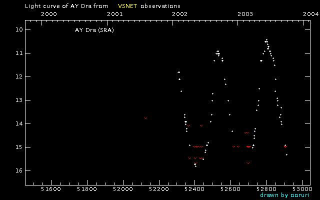 Light Curve of AY Dra (AY Draconis) from VSNET reports