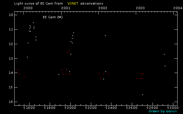 Light Curve of BE Gem (BE Geminorum) from VSNET reports