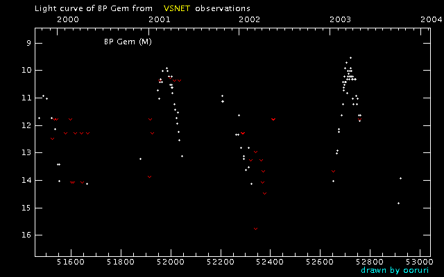 Light Curve of BP Gem (BP Geminorum) from VSNET reports