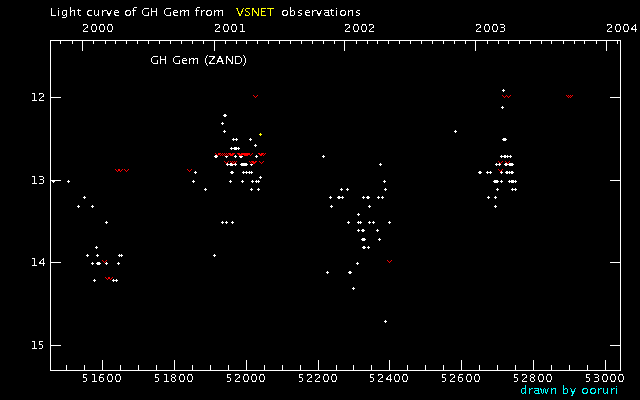 Light Curve of GH Gem (GH Geminorum) from VSNET reports