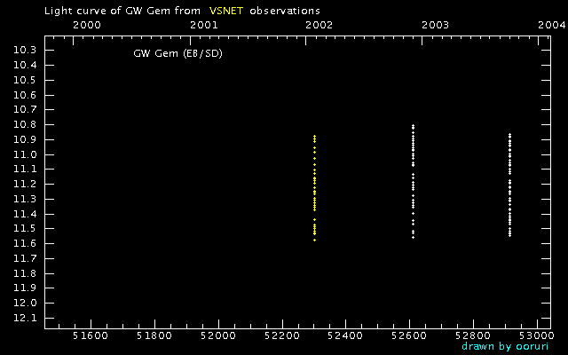 Light Curve of GW Gem (GW Geminorum) from VSNET reports