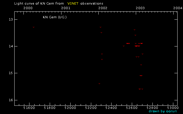Light Curve of KN Gem (KN Geminorum) from VSNET reports