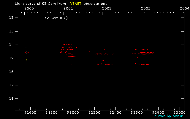 Light Curve of KZ Gem (KZ Geminorum) from VSNET reports