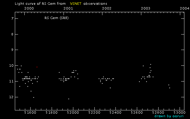 Light Curve of RS Gem (RS Geminorum) from VSNET reports