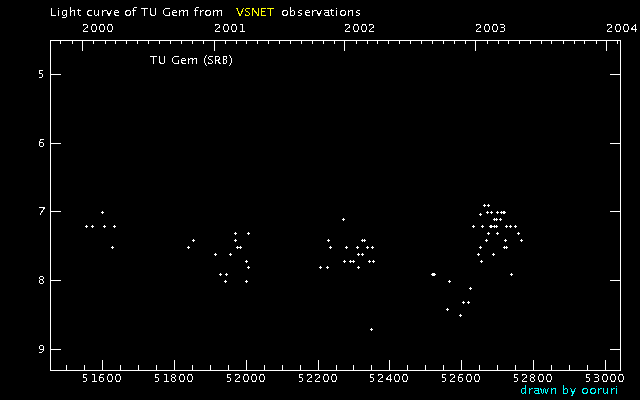 Light Curve of TU Gem (TU Geminorum) from VSNET reports