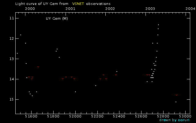 Light Curve of UY Gem (UY Geminorum) from VSNET reports
