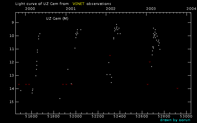 Light Curve of UZ Gem (UZ Geminorum) from VSNET reports