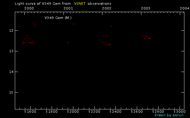 Light Curve of V349 Gem (V349 Geminorum) from VSNET reports