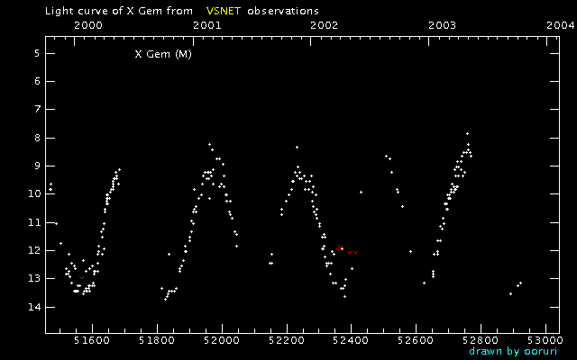 Light Curve of X Gem (X Geminorum) from VSNET reports