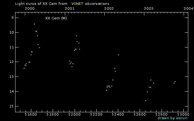 Light Curve of XX Gem (XX Geminorum) from VSNET reports