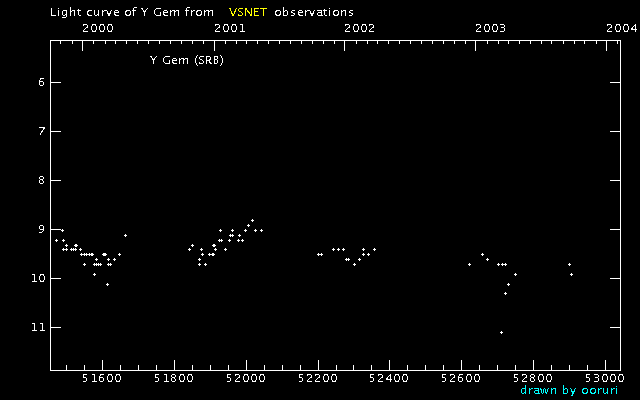 Light Curve of Y Gem (Y Geminorum) from VSNET reports