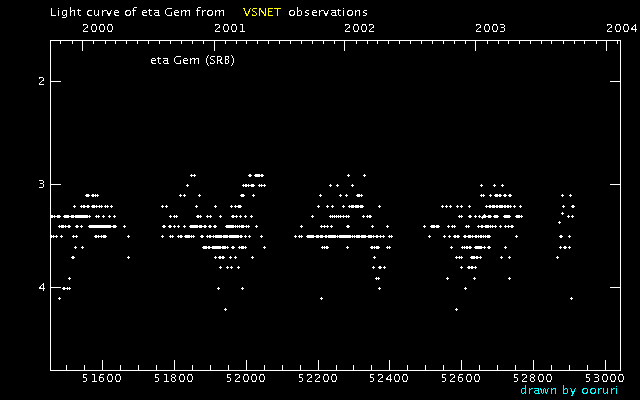 Light Curve of eta Gem (eta Geminorum) from VSNET reports