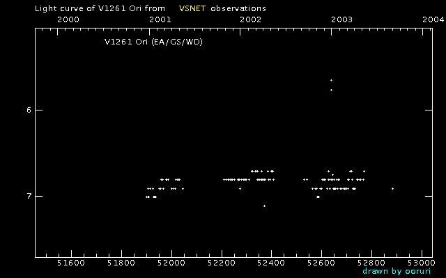 Light Curve of V1261 Ori (V1261 Orionis) from VSNET reports