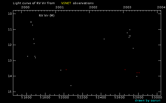 Light Curve of RV Vir (RV Virginis) from VSNET reports