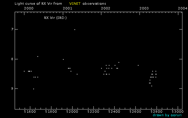 Light Curve of RX Vir (RX Virginis) from VSNET reports