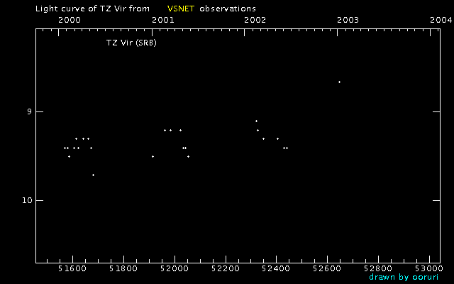 Light Curve of TZ Vir (TZ Virginis) from VSNET reports