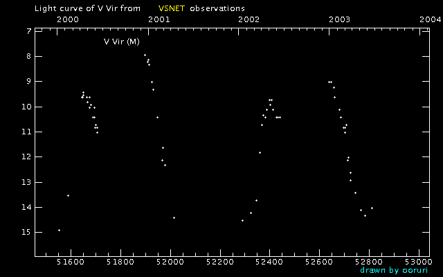 Light Curve of V Vir (V Virginis) from VSNET reports