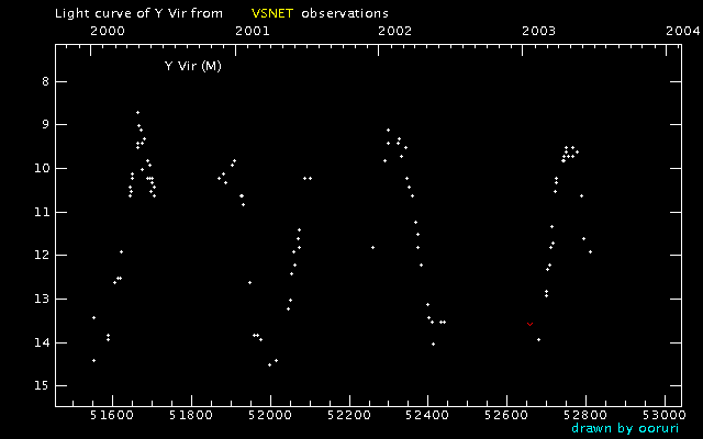Light Curve of Y Vir (Y Virginis) from VSNET reports