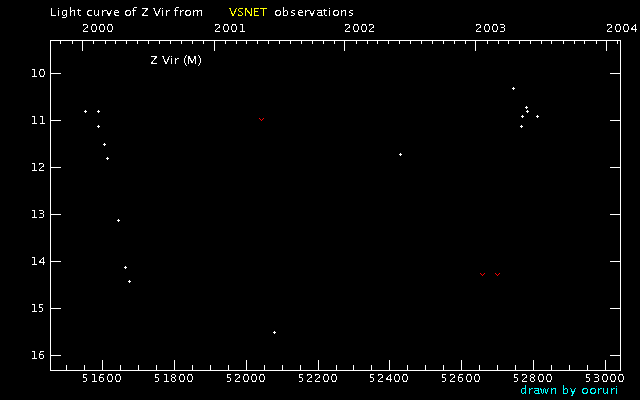 Light Curve of Z Vir (Z Virginis) from VSNET reports