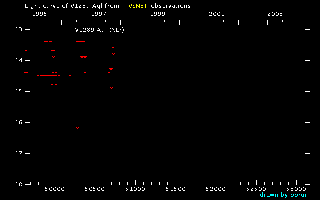 Light Curve of V1289 Aql (V1289 Aquilae) from VSNET reports