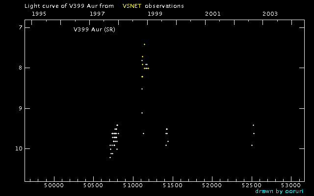 Light Curve of V399 Aur (V399 Aurigae) from VSNET reports