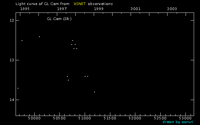Light Curve of GL Cam (GL Camelopardalis) from VSNET reports