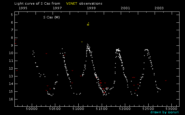 Light Curve of S Cas (S Cassiopeiae) from VSNET reports