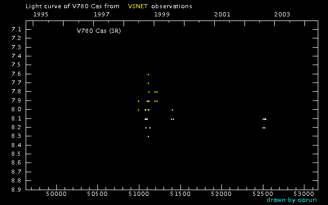 Light Curve of V780 Cas (V780 Cassiopeiae) from VSNET reports