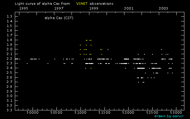 Light Curve of alpha Cas (alpha Cassiopeiae) from VSNET reports