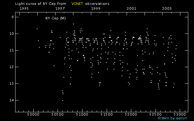 Light Curve of RY Cep (RY Cephei) from VSNET reports