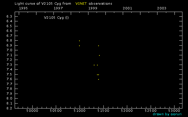 Light Curve of V2105 Cyg (V2105 Cygni) from VSNET reports