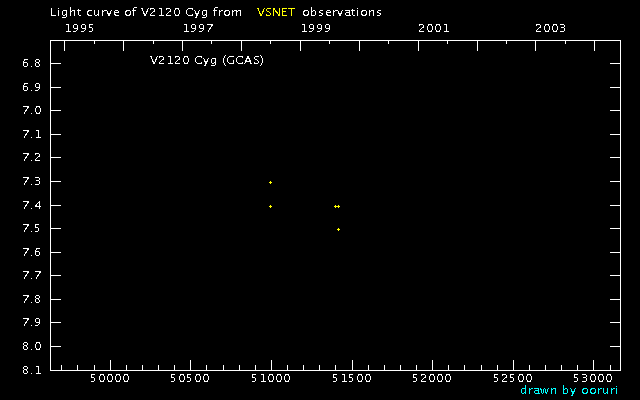 Light Curve of V2120 Cyg (V2120 Cygni) from VSNET reports