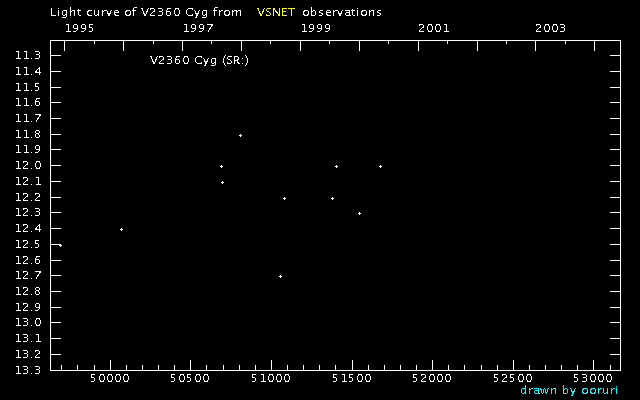 Light Curve of V2360 Cyg (V2360 Cygni) from VSNET reports