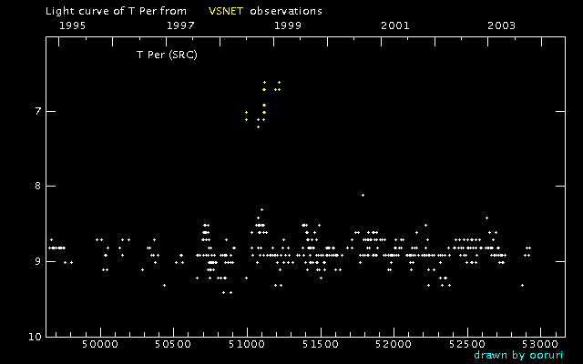 Light Curve of T Per (T Persei) from VSNET reports