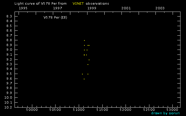 Light Curve of V578 Per (V578 Persei) from VSNET reports