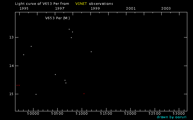 Light Curve of V653 Per (V653 Persei) from VSNET reports