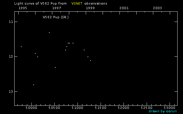 Light Curve of V562 Pup (V562 Puppis) from VSNET reports