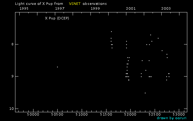 Light Curve of X Pup (X Puppis) from VSNET reports