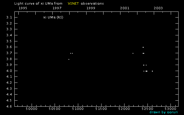 Light Curve of xi UMa (xi Ursae Majoris) from VSNET reports